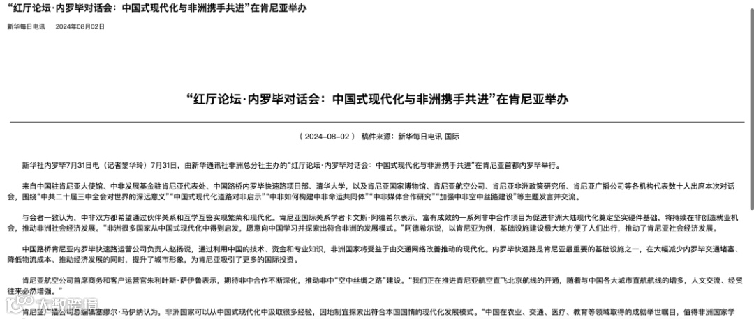 “红厅论坛·内罗毕对话会:中国式现代化与非洲携手共进”在肯尼亚举办