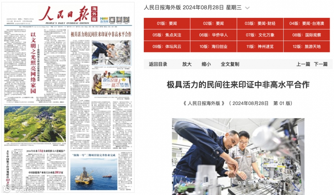 8月31日,光明日报报道称,中非合作论坛始终把能力建设作为中非发展合作的重要内容。许多中资企业不断推进本地化经营,重视提升非洲员工的知识和技能,如中国路桥成立蒙内铁路人才培训基地。