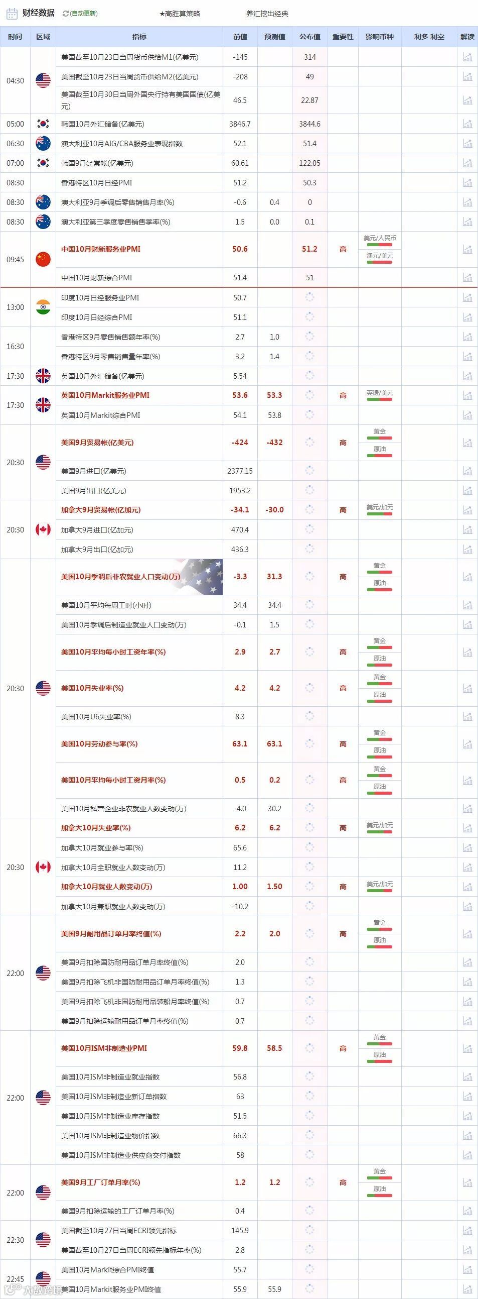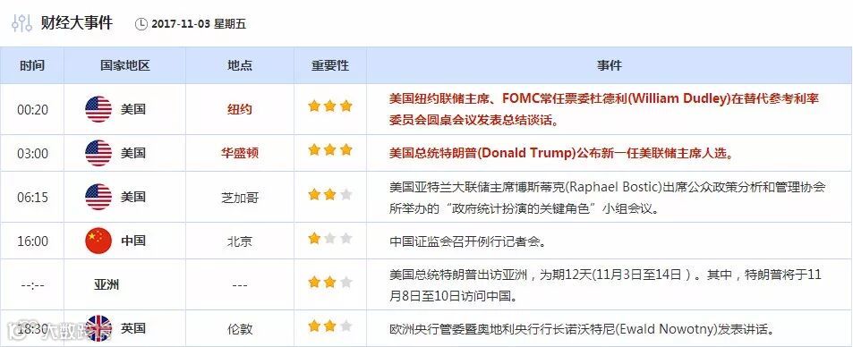 【财经数据】11月3日财经日历