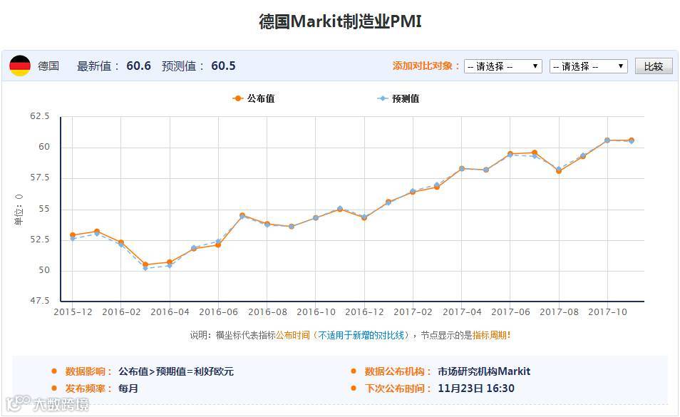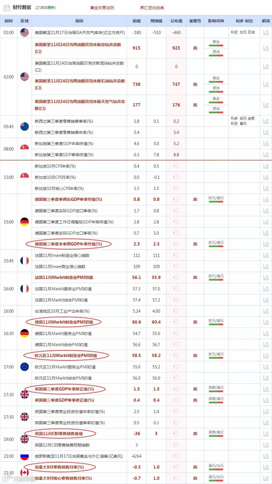 周四(11月23日)欧洲时段,投资者需关注15:00公布的德国第三季度未季调GDP年率终值。此后,投资者还需关注16:30公布的德国11月Markit制造业PMI初值,以及17:00公布的欧元区11月Markit制造业PMI初值。