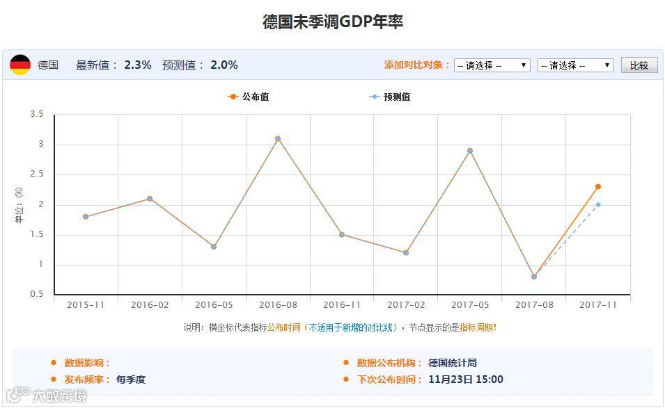 15:00 德国 第三季度未季调GDP年率终值(%)