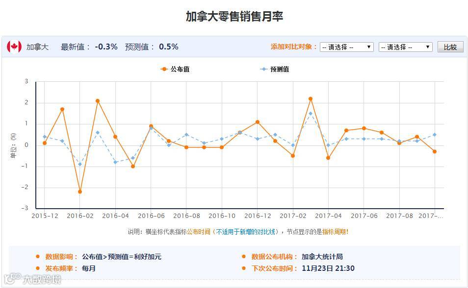 美国时段,投资者需关注21:30公布的加拿大9月零售销售月率。