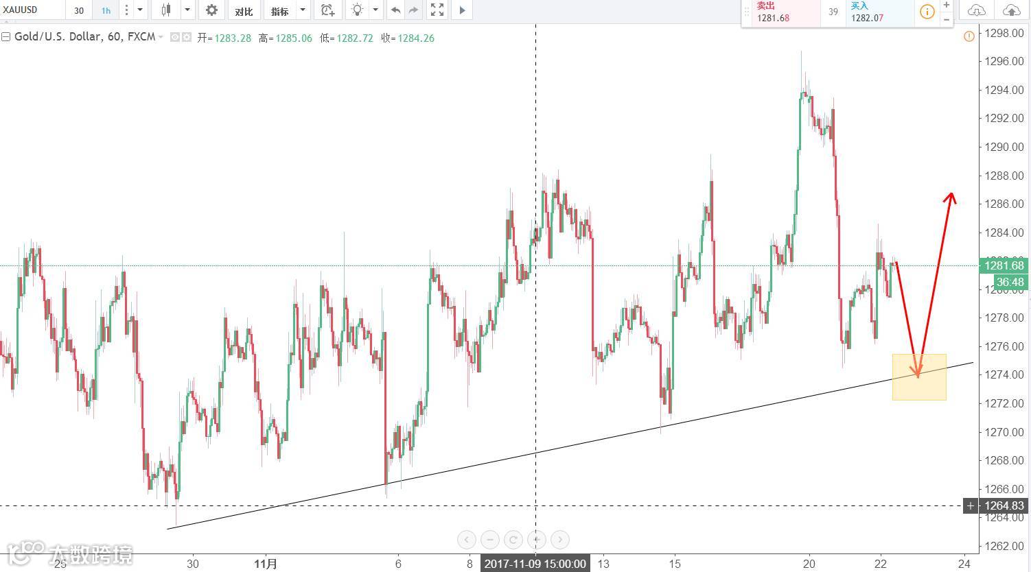 技术点评:黄金仍然维持在了区间震荡,市场关注的焦点仍然是美联储12月份加息的预期,今日早晨美联储主席耶伦在纽约大学斯特恩商学院发表演讲,将会视为“最后的态度”,耶伦仍然表示看好12月份加息,关于缩表目前也进展良好。美元指数周二在94附近震荡,黄金重返1280上方,操作上1280下方以做多为主,1290上方以做空为主。