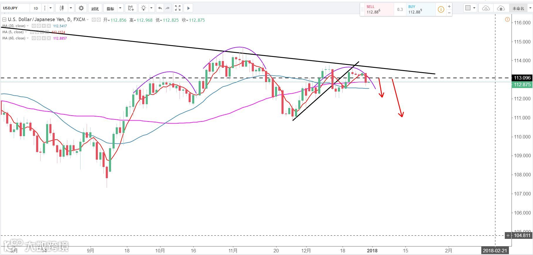 策略:反弹113.1区域布局空单,止损113.4上方,目标看向112以及111。(谨慎操作,请设置好止损线!)