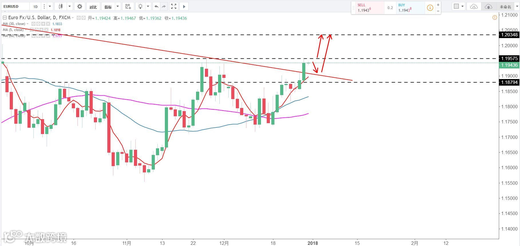策略分析:多头趋势已经确立 ,下降趋势线已经突破,下方支撑1.1930 以及1.19,原则上逢低做多。策略:1.1930区域布局多单 止损1.19下方,目标1.2以及1.21。(谨慎操作,请设置好止损线!)