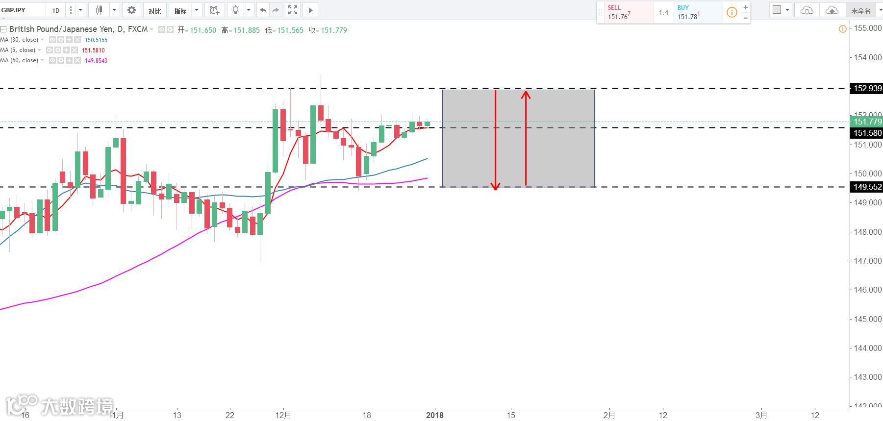 策略分析:多日来高位震荡选择方向,短线偏多头,上方压力153下方支撑149.5。