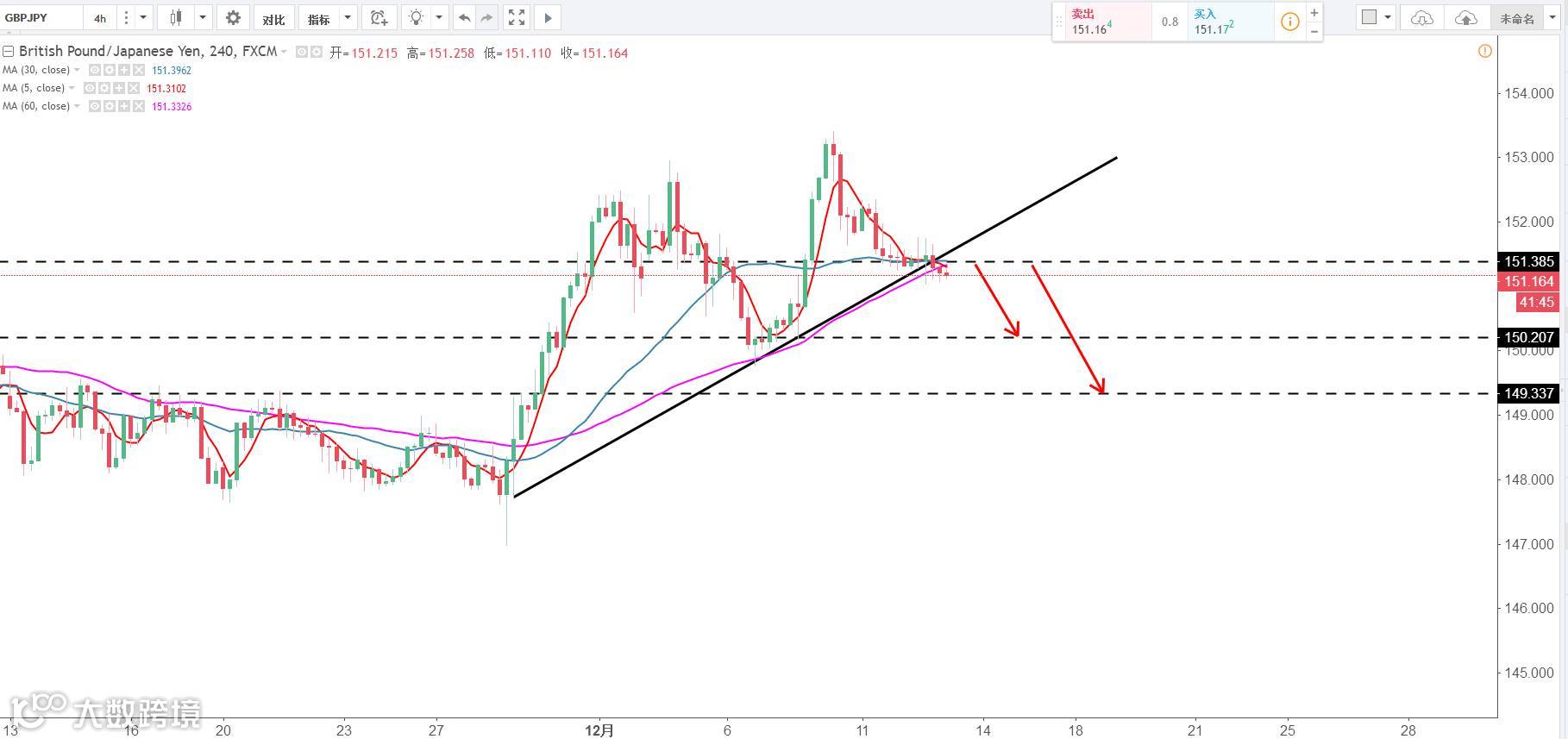技术点评:短线上来看 4H级别开始出现短期通道被打穿,原则上今日逢高做空,压力151.35附近。