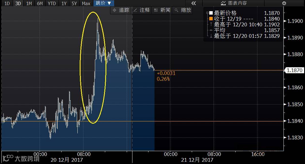 (欧元兑美元近两日分时走势图,在德国组阁出现进展后拉升)