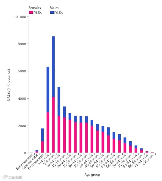 2019年各年龄组和性别YLD(伤残寿命损失年)人口构成