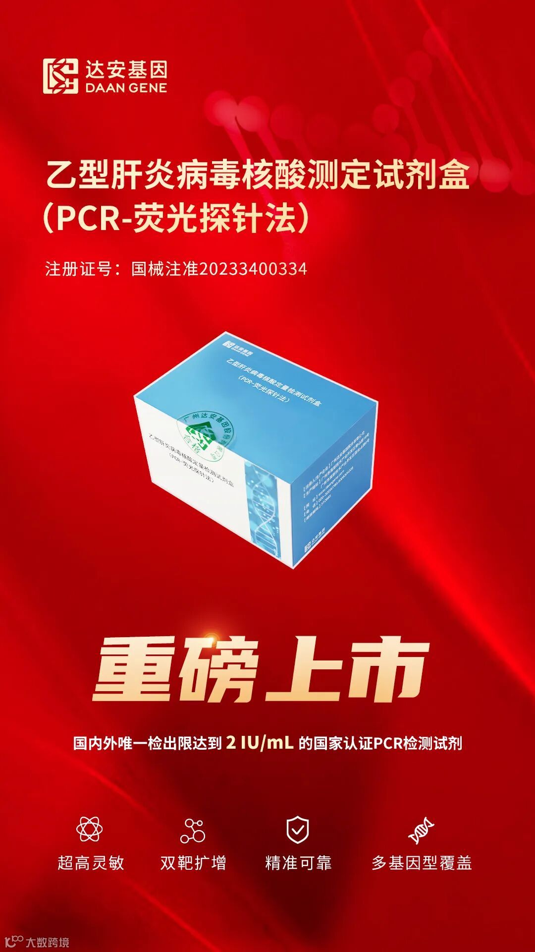 近日,达安基因最新研制的乙型肝炎病毒核酸测定试剂盒(PCR-荧光探针法)取得国家药品监督管理局(NMPA)三类医疗器械认证,注册证号:国械注准20233400334,助力早日消除病毒性肝炎。