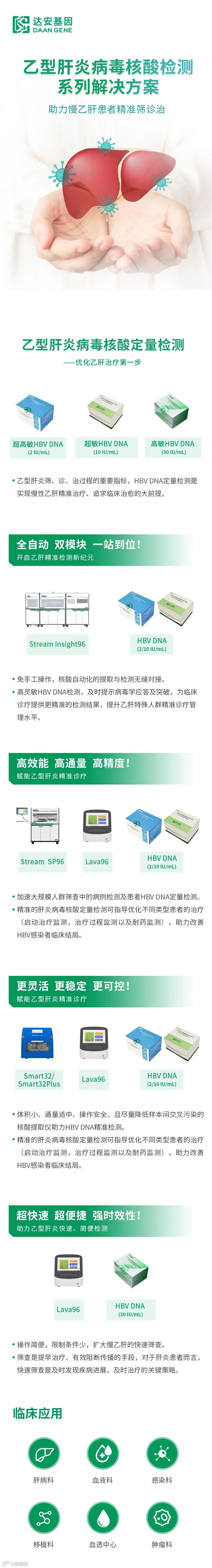 精准检测,帮助临床医生在慢性乙型肝炎诊断、抗病毒治疗监测、随访中做出合理决策,达安基因始终致力于推动感染性疾病诊疗水平的不断进步,提供分子诊断整体解决方案,助力以患者为中心的全病程管理,为实现WHO提出的2030年消除病毒性肝炎而努力。