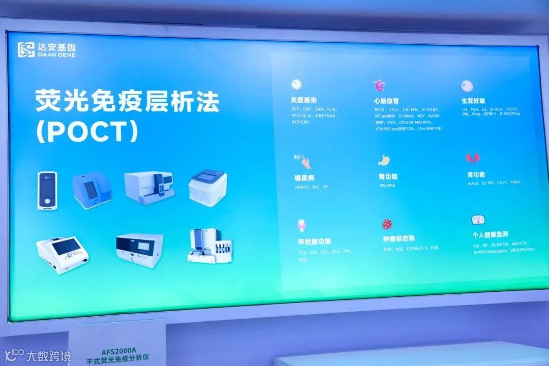 在POCT领域,展出了多款自主研发的荧光免疫分析仪,针对不同的检测需求,配套9个大类53个项目的荧光免疫检测试剂,涵盖了感染标志物、心脑血管标志物、肿瘤标志物、甲状腺功能、肾脏功能、胃功能、糖尿病、生育妊娠检查、个人健康检测等应用领域,积极助力疾病的早期筛查、风险预测及缩短治疗决策时间。