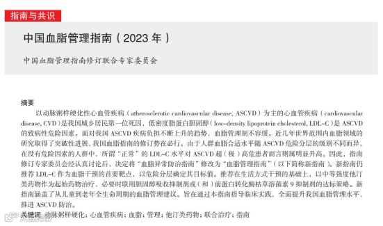 最近,由中国血脂管理指南修订联合专家委员会、中国心血管病专家委员会、中华医学会心血管病学分会、中国卒中学会共同修订的《中国血脂管理指南(2023)》发布了。