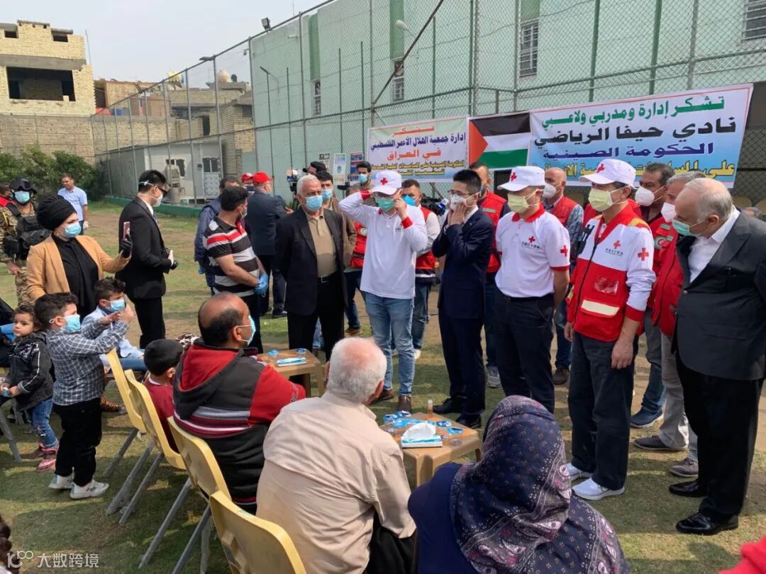16日,专家组和中国驻伊拉克大使张涛一行来到位于巴格达东部的海法巴勒斯坦社区活动中心,向生活在当地的巴勒斯坦难民捐赠口罩,传授疫情防控和个人防护知识。
