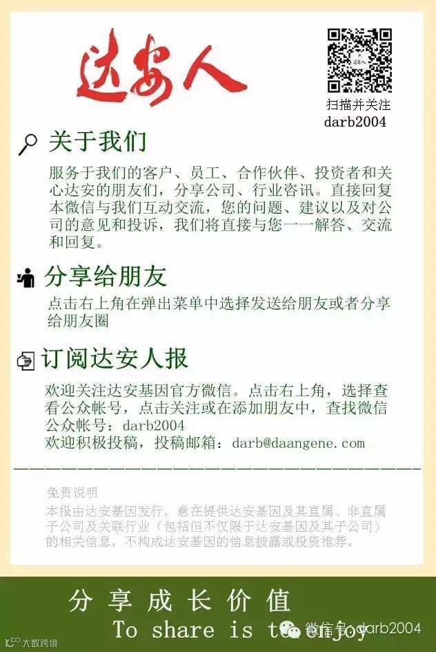 温馨提示:点击标题下方的蓝色小字,可快速关注“达安人报”,达安人报是上市公司达安基因(002030)的官方微信,关注后直接微信回复即可与公司互动对话,您咨询、关心的问题均可得到我们一对一的快速回复,千真万确哦!