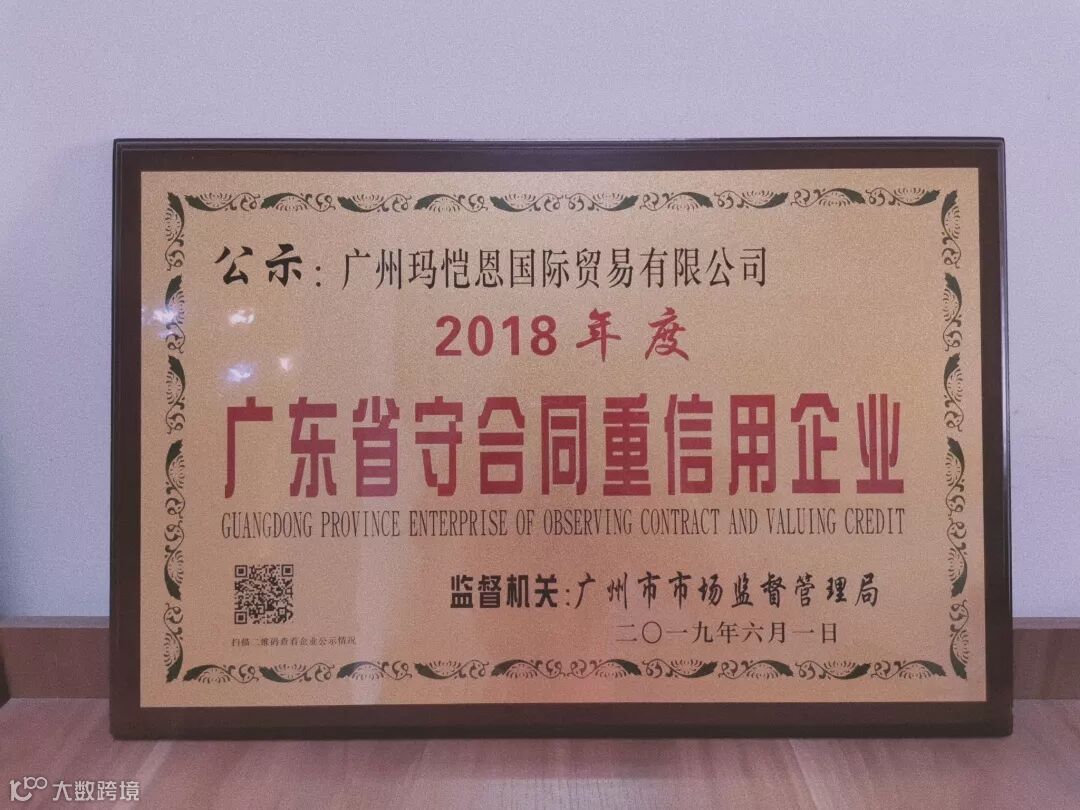 近日,在广东省市场监督管理局开展的“守合同重信用”企业评选活动中,玛恺恩凭借自身良好的信用体系建设、诚信守约形象,荣获2018年度广东省“守合同重信用”企业。同时,广州市市场监督管理局为玛恺恩颁发了公示证书。