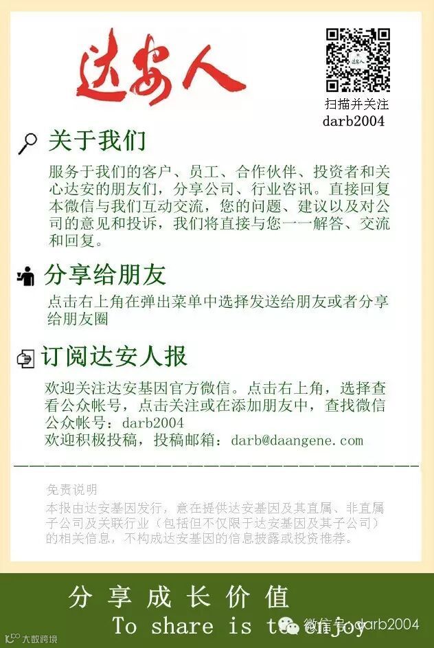 温馨提示:点击标题下方的蓝色小字,可快速关注“达安人报”,达安人报是上市公司达安基因(002030)的官方微信,关注后直接微信回复即可与公司互动对话,您咨询、关心的问题均可得到我们一对一的快速回复,千真万确哦!