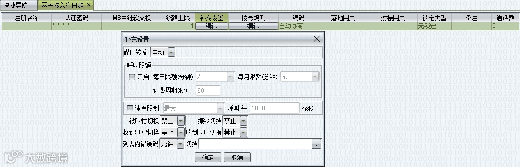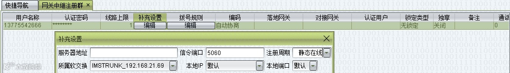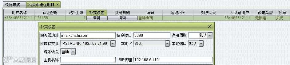由IMS提供以下注册信息,对应填写到网关注册中继群中