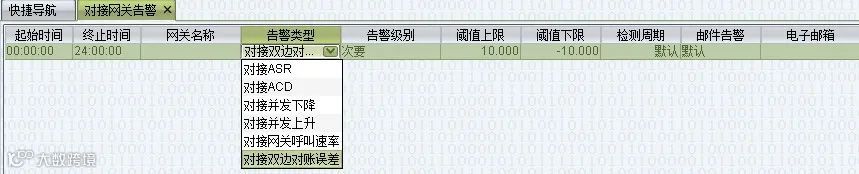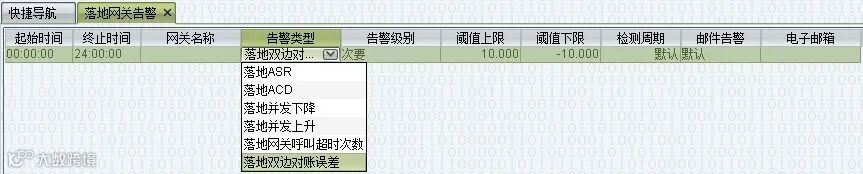 双方都启用对账功能之后,在 VOS3000 中可以设置 “对接双边对账误差” 告警或 “落地双边对账误差” 告警。