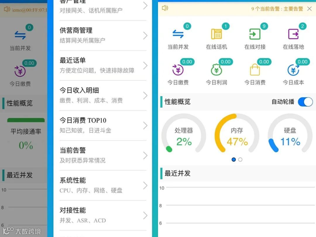 打开Web Manage,用户在首页即可看到今日消费、今日成本、今日利润等详细信息。用户可随时掌握ASR、ACD、PDD、实时并发等分析数据,以及实时获取内存、硬盘、CPU、带宽的利用率信息,以确保业务平稳进行。