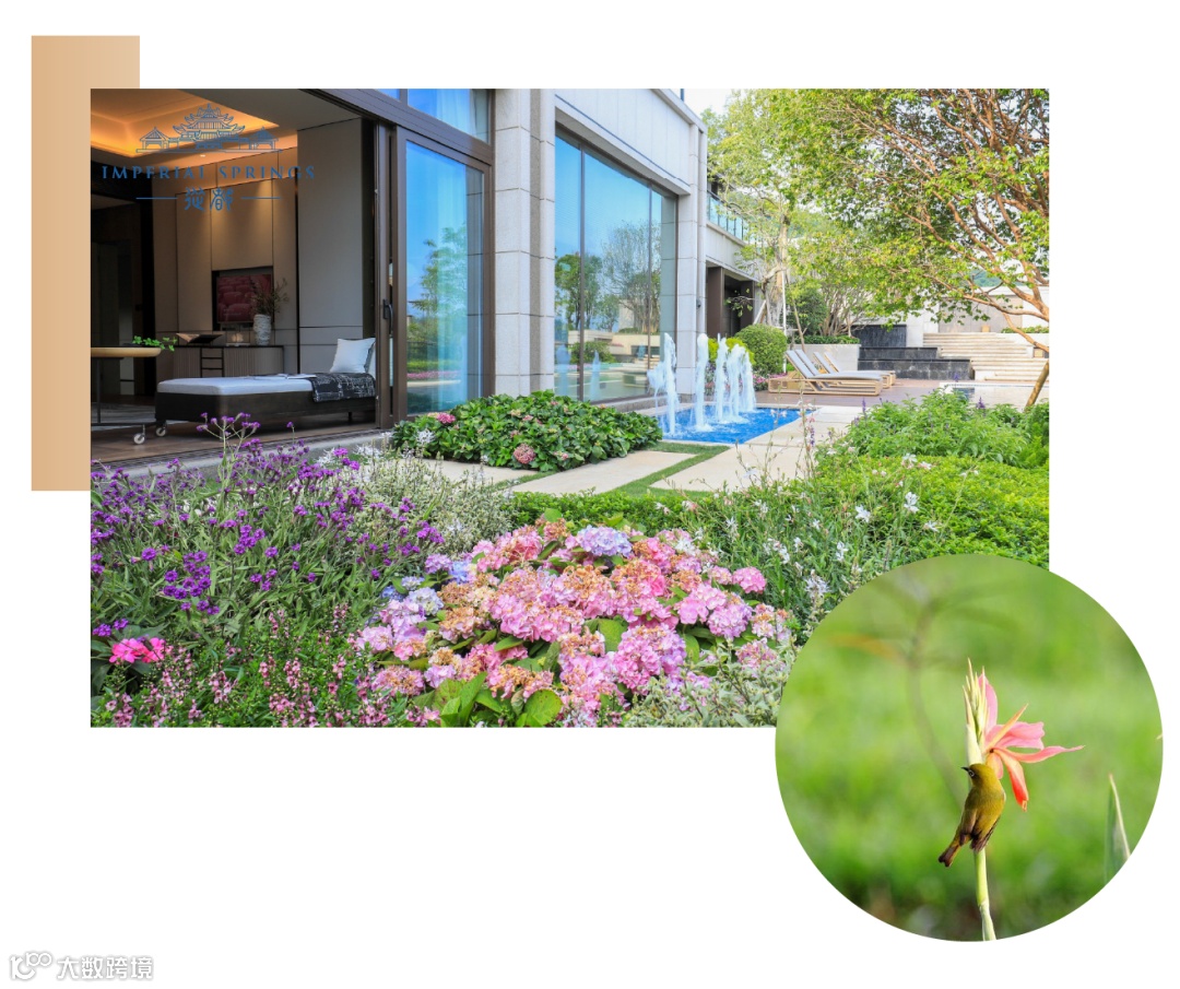 从都国际庄园背倚凤凰山脉,占地约280万平方米,森林覆盖率达70%,这不,入园如入森林,视觉、听觉、嗅觉、味觉、触觉包围于无尽广阔、丰厚、纯粹的绿荫之中,叫人一见倾心。