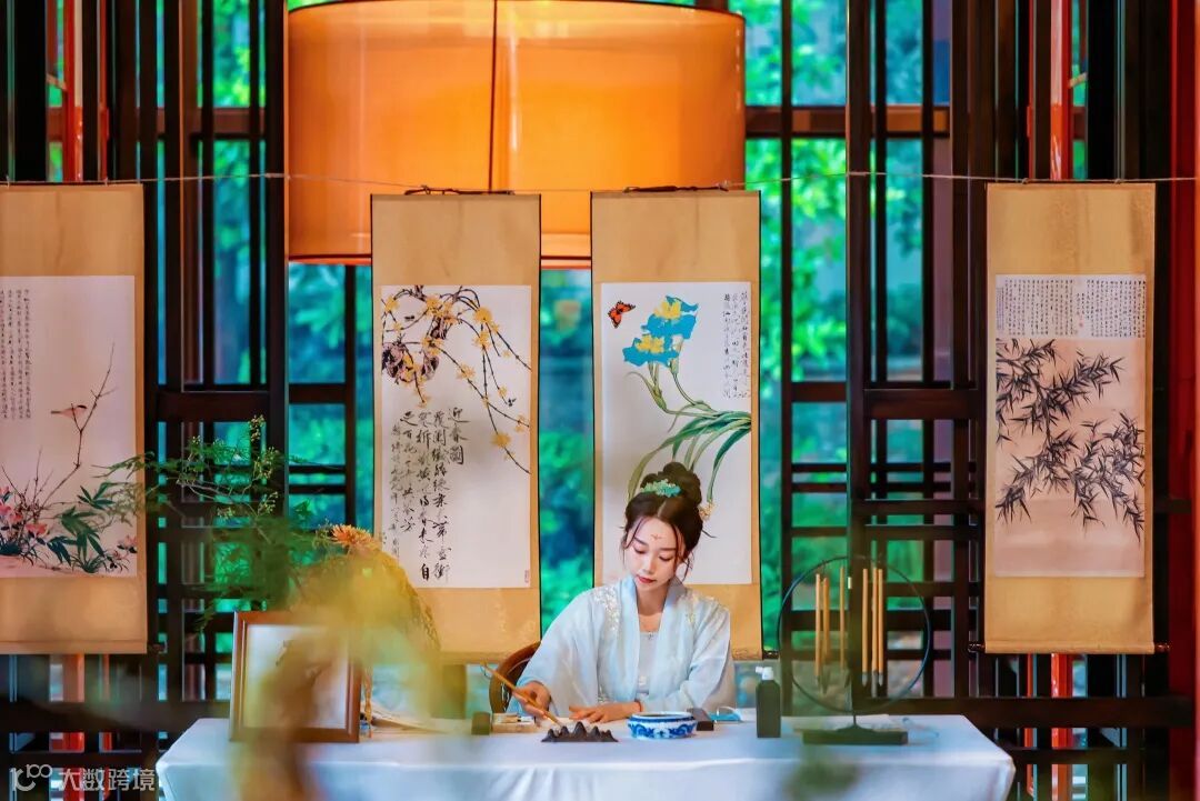 挂画的风格为诗词字画、山水画、花鸟画等,意境追求清远高旷,正合隐逸雅致的风尚。从都花月宴现场将有绘画老师展示国画创作,追求自然意境之美。