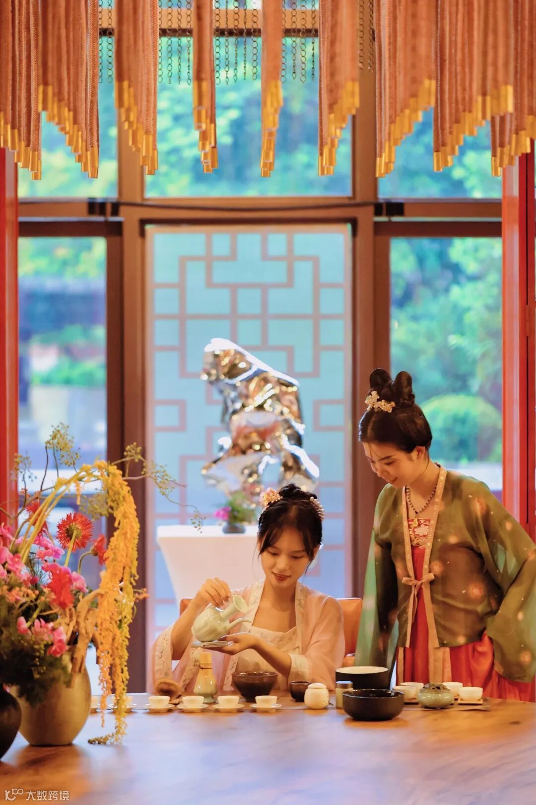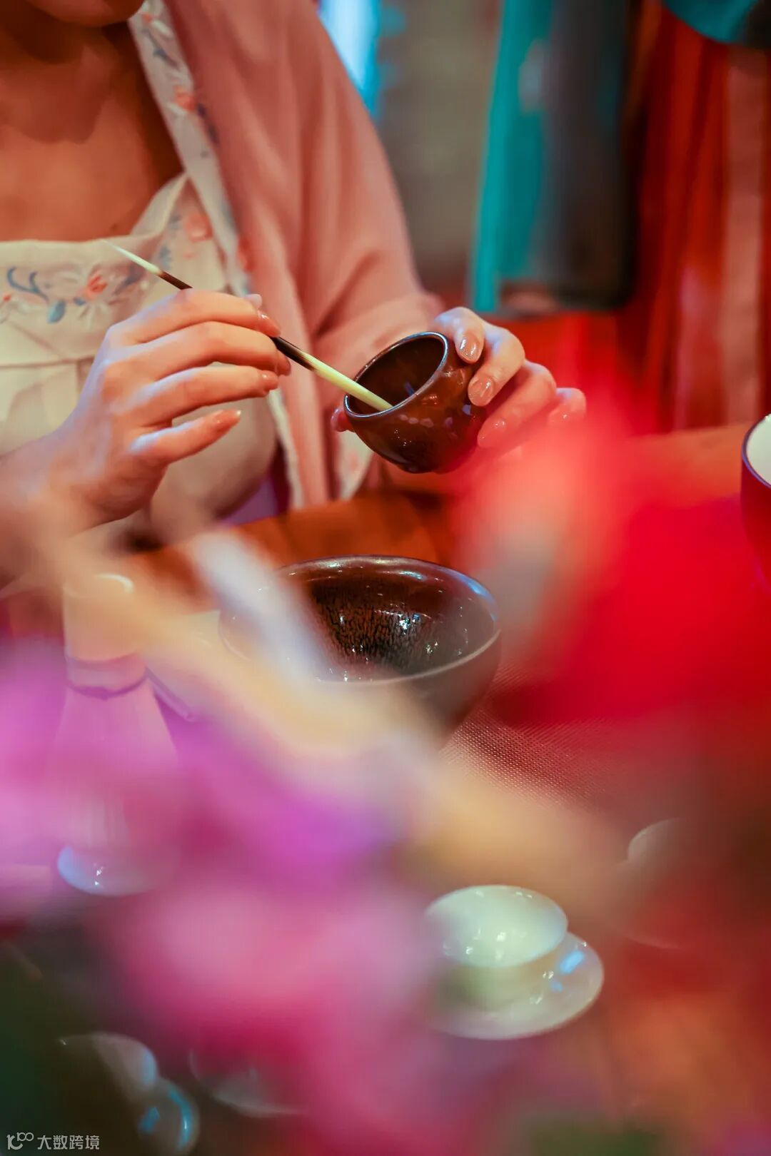 不止品茶,还可趣观“茶百戏”,也是所谓世界上最早的拉花,“骤雨松声入鼎来,白云满碗花徘徊。”感受一场泡沫里的美学盛宴。