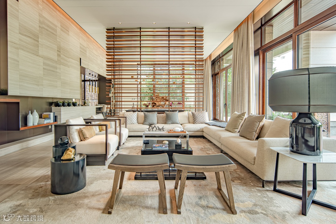 以大面积玻璃布局,塑造轻盈灵动的建筑姿态,呈现出大道至简的生活意境。高级的艺术美感,拉近了居者与自然景观的交流互动,更将庭院打造成为煮茶畅谈的社交空间。