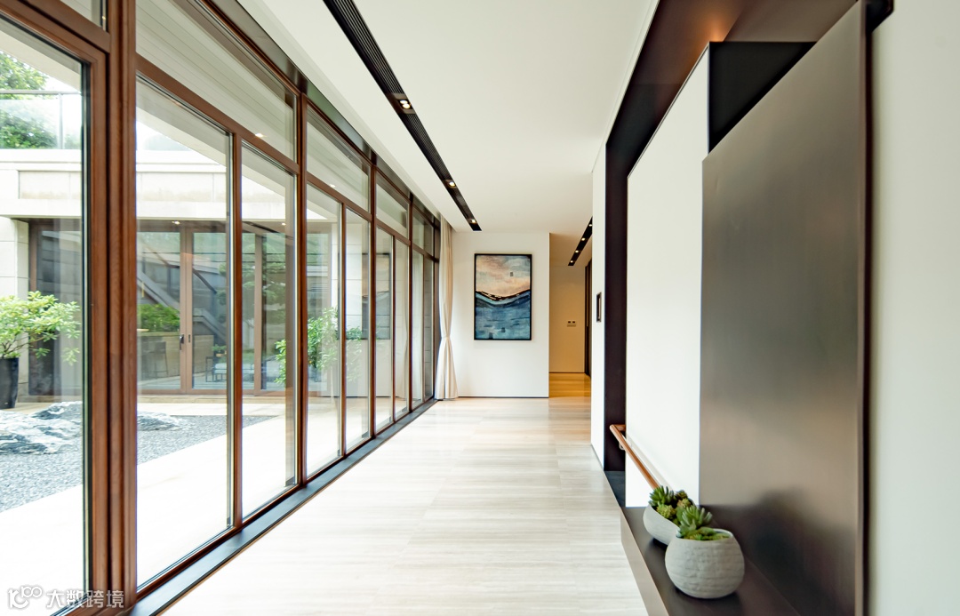 内庭——中轴将客厅与客房分开,玄关、起居、餐厅和厨房围绕内庭设置,空间内外通透,双重景致,使各部分动线从容舒适。