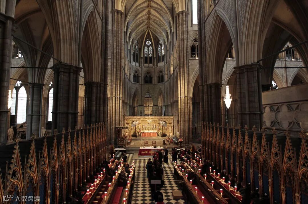 画面背后是直直耸立的石柱,垂直式构图,暗暗传递出“君权来自上帝”的意味,给人以权威感;同时,女王手执重重的长袍,隐喻着女王承担的公共责任。