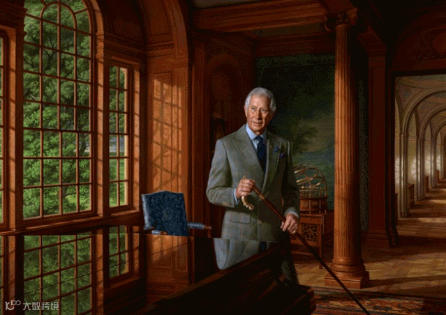 在查尔斯王子70岁大寿的当天,Ralph专门为他绘制了一张肖像画。画面构图极其讲究,窗外的橡树代表君主制,配以手中象征权力的手杖,这一幕恰好喻示了他将成为一国之君。