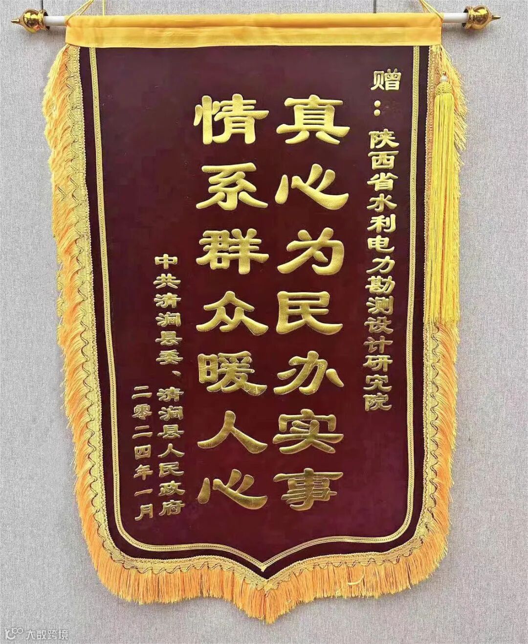 会上,魏克武院长介绍了设计院发展历程、业务板块、技术优势,听取了工作队2023年度乡村振兴工作开展情况。贺敬县长赠送了“真心为民办实事,情系群众暖人心”锦旗,对设计院为清涧县乡村振兴做出的努力和取得的成效给予了肯定。随后,双方结合清涧发展需求,就合作推进县域水网规划、流域综合治理等水利基础设施建设事项进行了交流,希望通过进一步整合资源,打造科技示范帮扶模式,共谋县域水利事业高质量发展,建设美丽、富裕清涧。