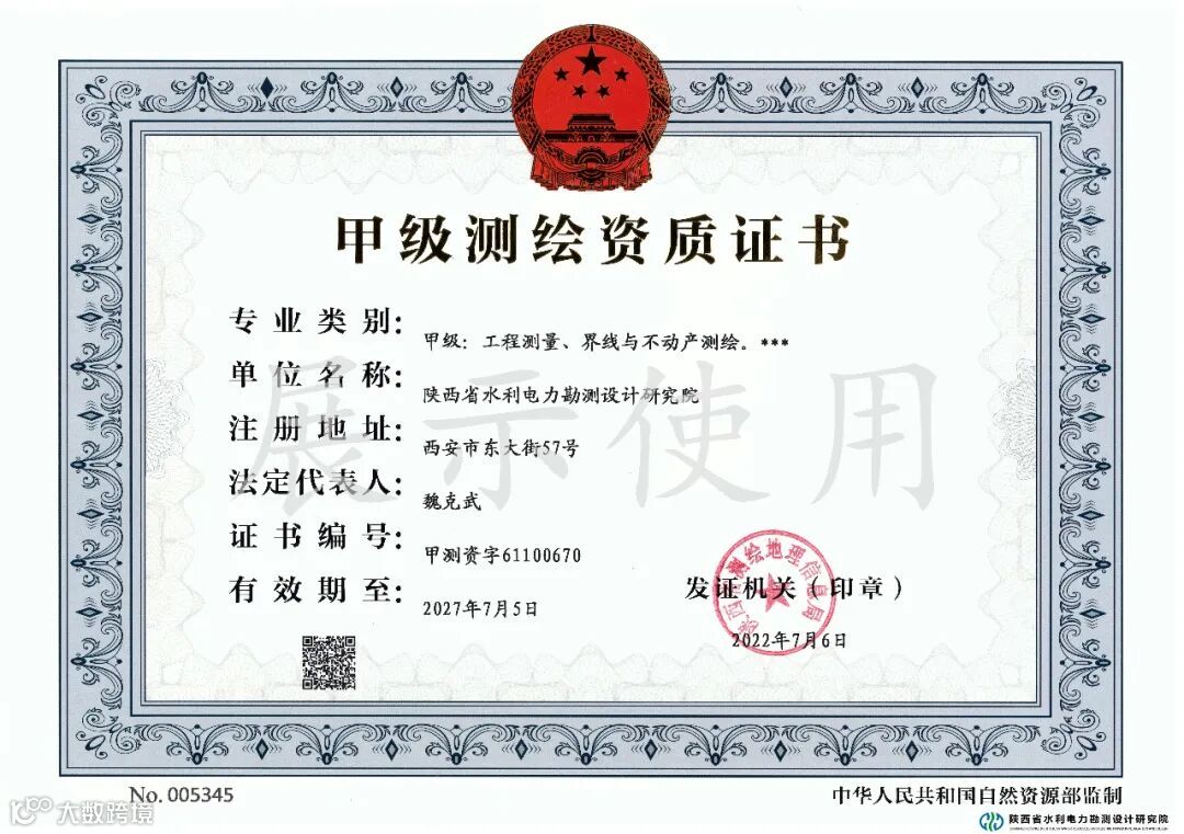 近日,省水电设计院“界线与不动产测绘”资质升级申请材料顺利通过陕西省测绘地理信息局认定,成功获得甲级测绘资质证书。