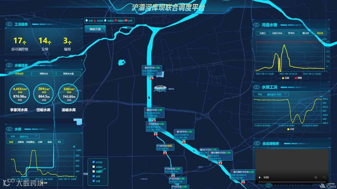 浐灞河库坝联合调度系统统筹流域内6座水库和30座景观坝,构建以水雨情、水质、视频等为基础数据的信息化平台实现流域四预,运用智慧算法推演库坝联合调度方案,为合理调度流域水资源、建立数字浐灞河打造了坚实基础。平台上线后按“库坝联调,河库错峰”、“由上至下,梯级立坝”、“半坝滞洪,分级沉沙”实施了两次强降雨调度,浊度快速降低,水质逐级向好,核心保障区水质达到了近30年来最佳,实现了“水量充足,水质优良”的目标。