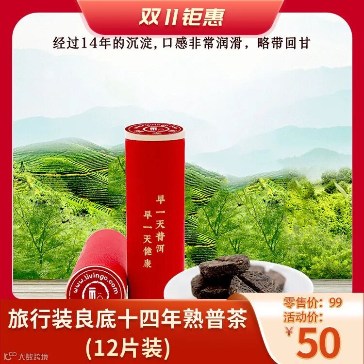 1、旅行装良底十四年熟普茶(12片装)