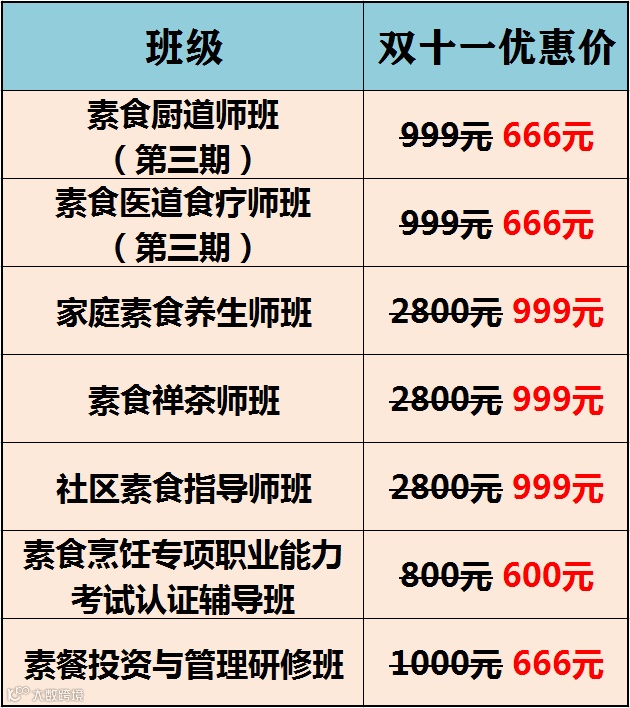 广州素食学校双十一推荐