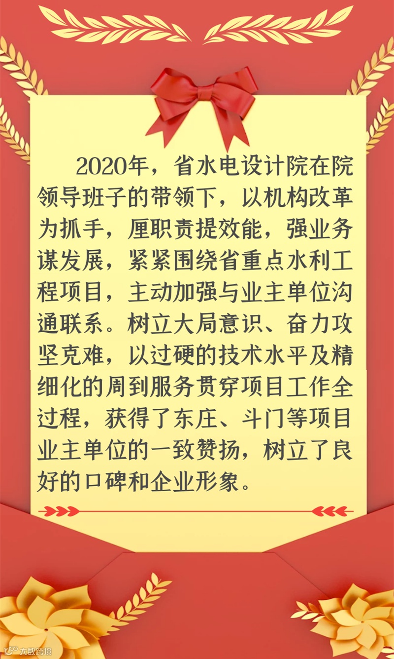 陕西省水利电力勘测设计研究院(集团)有限公司成立于1956年,为陕西水务发展集团有限公司全资持股二级公司,是以科技创新为驱动,融合工程技术与数智技术,为客户提供集规划策划、设计咨询、工程总承包等全生命周期技术服务的涉水领域综合性工程咨询集团