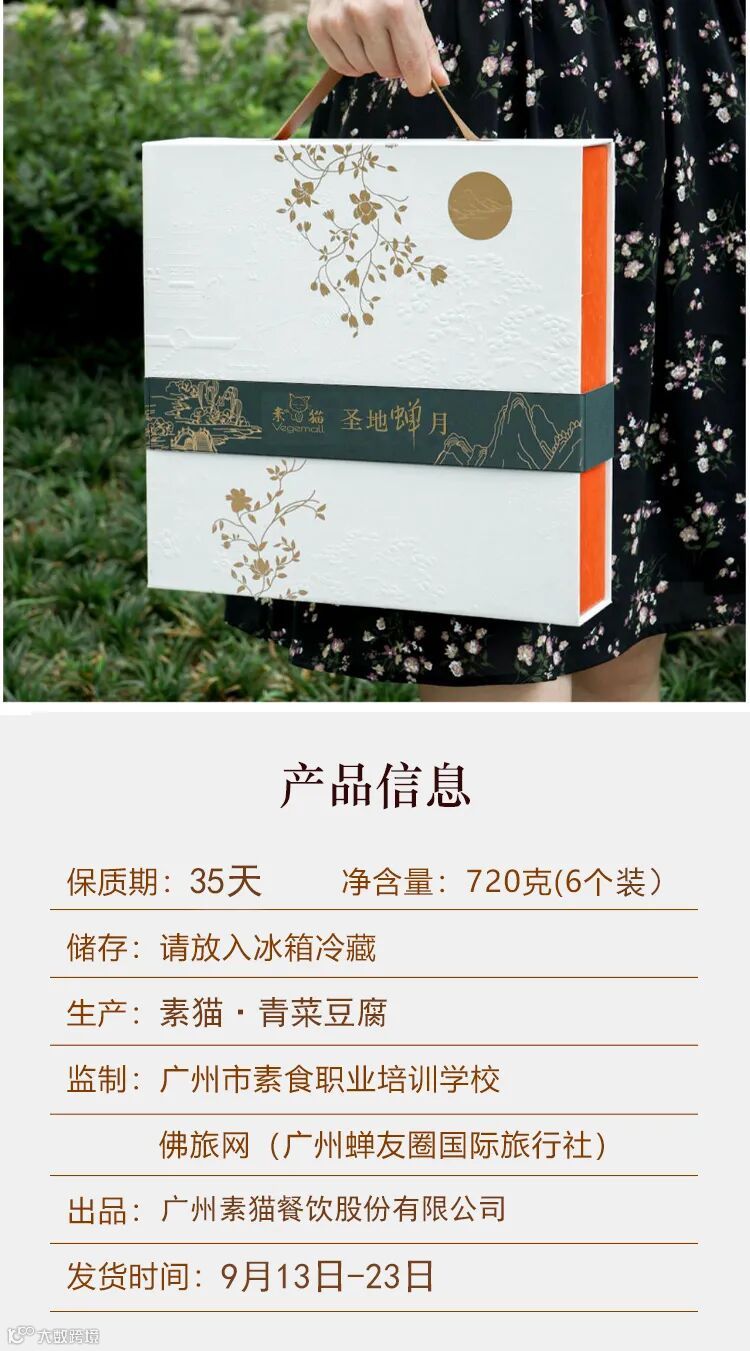 全新推出2023素猫《圣地蝉月》手工纯素优质月饼,不仅选用优质高筋面粉,亦加入五台山核桃仁、普陀山海苔、峨眉山黄糖糕、九华山黄精蜜饯、杏仁片、瓜子仁、腰果、芝麻等为馅料,口感丰富,香甜而不肥腻,全手工。