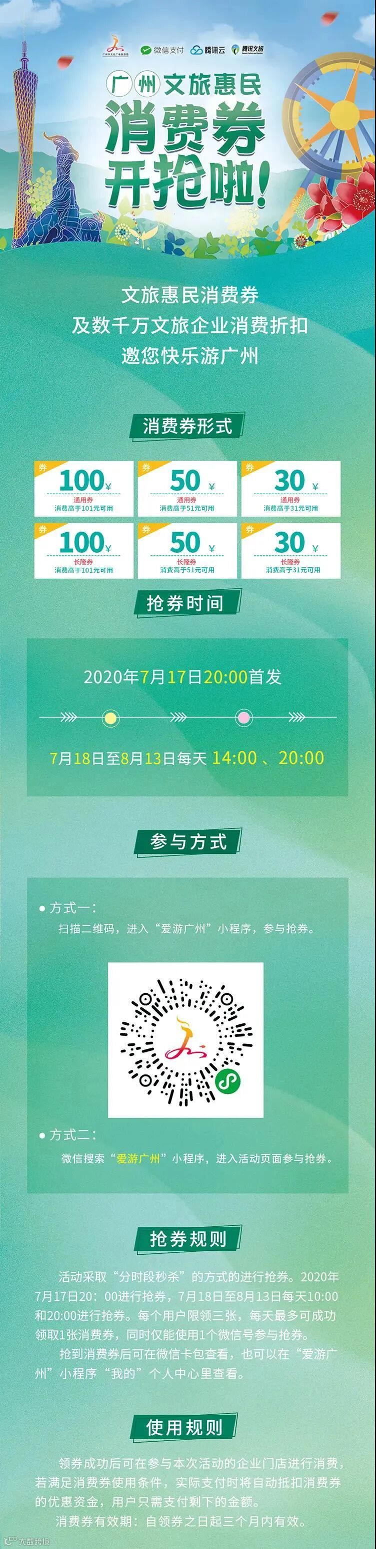 蝉友圈佛旅网讯 广州市助推疫后文化旅游市场复苏再出新招。广州市文化广电旅游局从7月17日晚上8点开始,向全社会发放3000万元“广州文旅惠民消费券”。