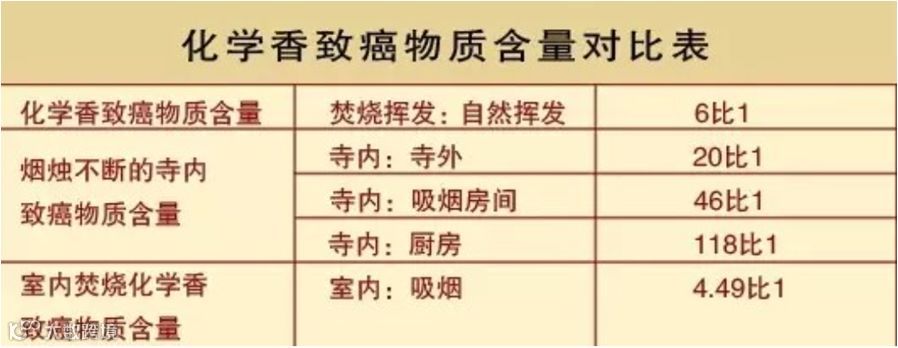 2、烟烛不断的寺院内致癌物质含量比寺外空气高19倍,比家庭中吸烟房间内含量高45倍,是厨房含量的118倍;