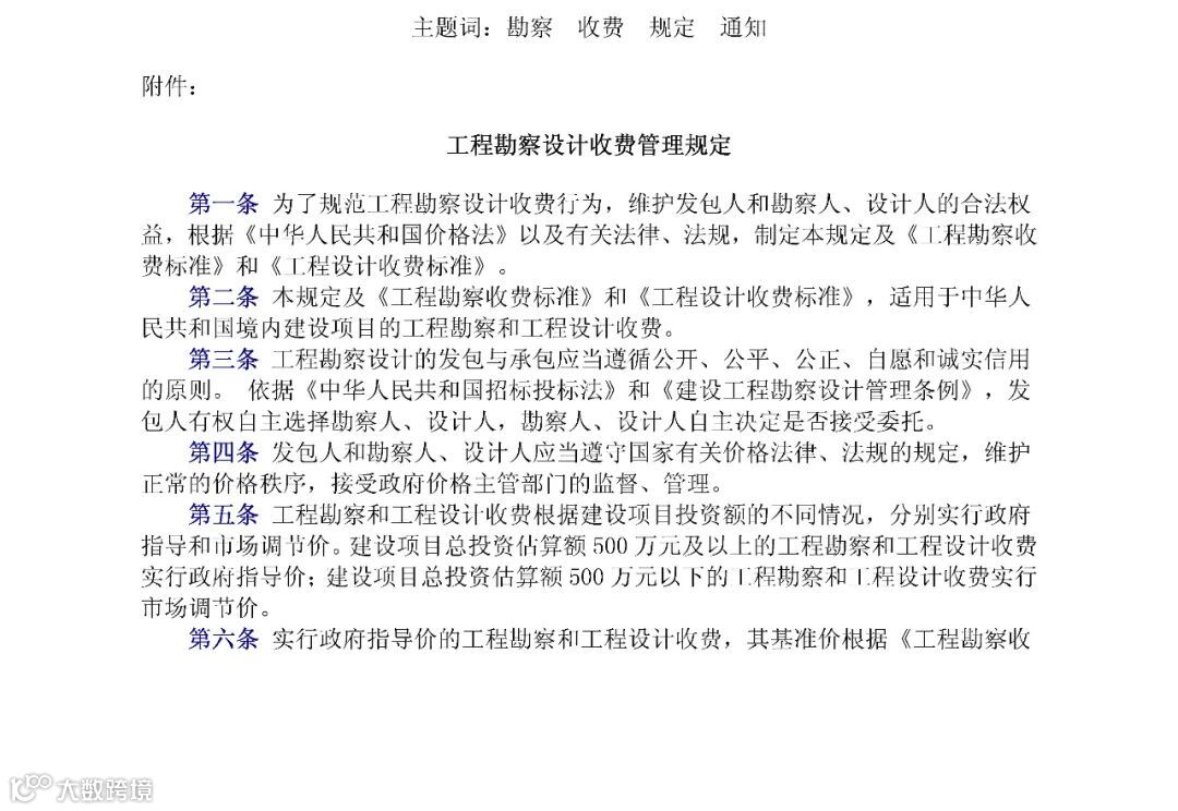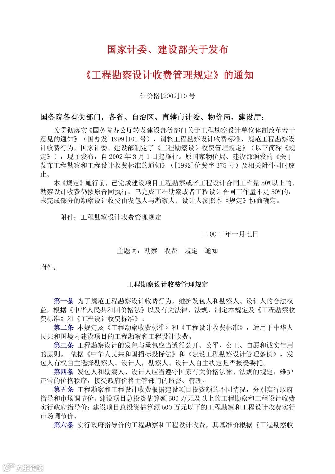 为贯彻落实《国务院办公厅转发建设部等部门关于工程勘察设计单位体制改革若干意见的通知》(国办发[1999]101 号),调整工程勘察设计收费标准,规范工程勘察设计收费行为,国家计委、建设部制定了《工程勘察设计收费管理规定》(以下简称《规定》),现予发布,自 2002年3月1 日起施行。原国家物价局、建设部颁发的《关于发布工程勘察和工程设计收费标准的通知》([1992]价费字 375 号)及相关附件同时废止。