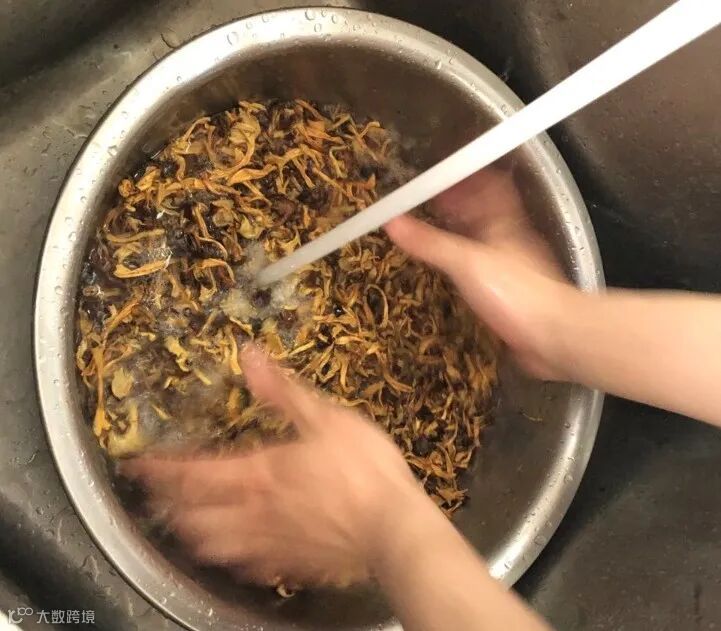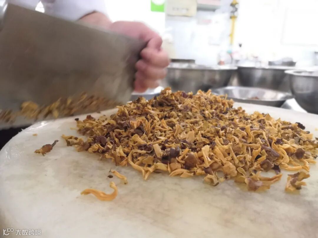 其中,带有沙子和松针的野生桂花菌,清理起来极其耗费手工,菌尾端的杂质也需一根根清理,以确保成品酱口感的顺滑、质嫩。