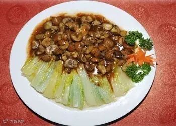 特点:此菜白绿相间,芥蓝菜脆嫩,白灵菇爽滑。