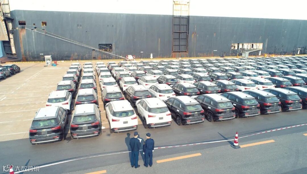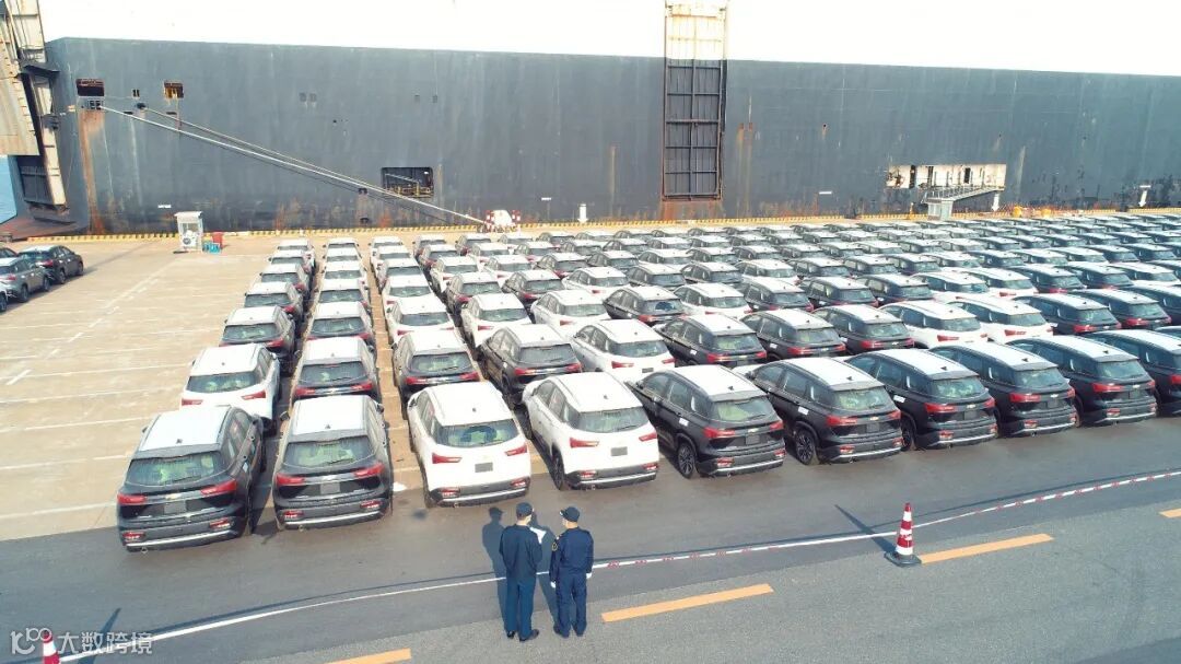 广州海关所属南沙海关关员在南沙自贸试验区对出口汽车进行监管