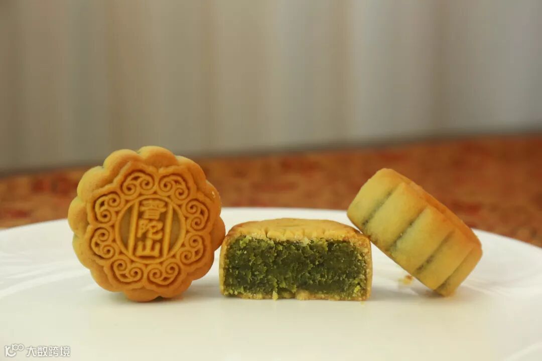产于四川省峨眉山的竹叶青茶,形似竹叶,色泽嫩绿油润;汤色黄绿清亮,叶底浅绿匀嫩;滋味清醇爽口,饮后余香回甘。有提神益思、生津止渴、消除疲劳等功效。而吃以此茶水所制的月饼也清绿晶莹,爽口甘甜。