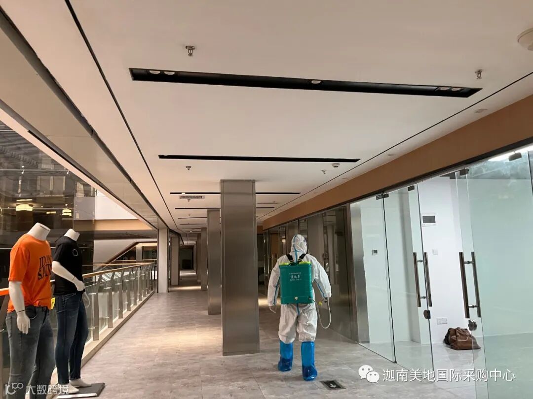 商场的公共区域(公众场景摆设、进出口、座椅、电梯、卫生间)在商场营业前后,均进行了无死角消毒,每个区域能让顾客触摸到的地方,都保持消毒!