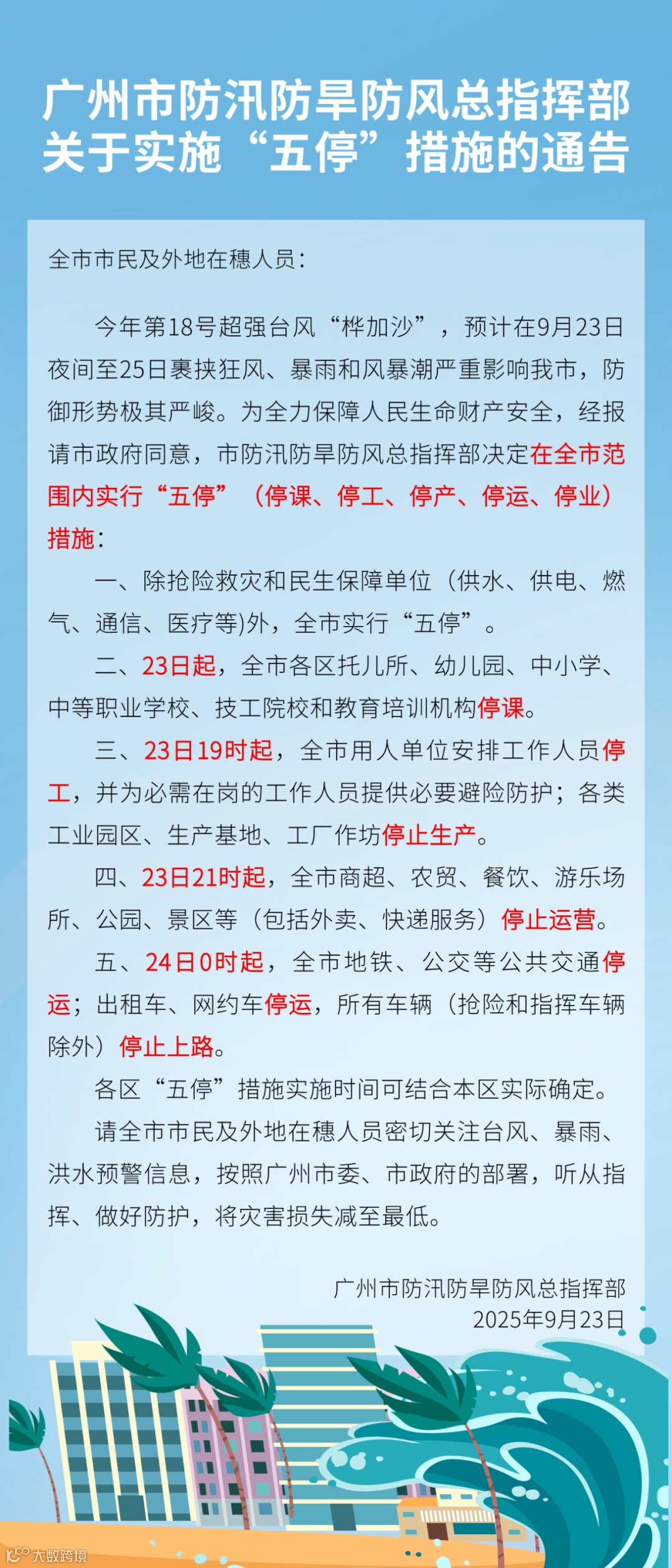 转发广州市应急局丨关于实施“五停”措施的通告