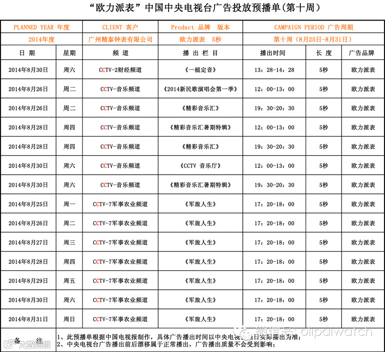 OLIPAI欧力派表2014年,欧力派重磅出击,再度携手央视,重现华丽风采。