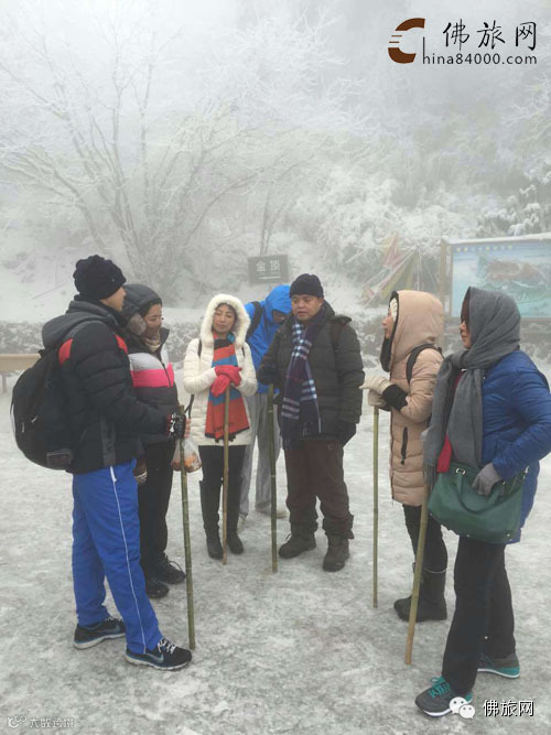 团友们抵达峨眉山后纷纷祭出各自装备,人人穿上冰爪,手扶竹杖,开启了佛旅网首期冬月三步一拜之旅。在朝圣行程中,领队衲木错从佛理与学术的角度为大家细细讲解峨眉山的佛教历史,从峨眉山普贤菩萨主寺到乐山大佛等景点以及峨眉山的各种朝圣特色文化。在讲解中、在圣地里、在佛菩萨前,团友们静静感悟着峨眉山的神韵灵秀,心中仿佛有一种脱俗般的感悟与超然。尤其是团友们在结冰的地上三步一拜,佛旅网八年朝圣团以来,此行壮举为第一次,如此虔诚精进之心,让领队赞叹不已,亦引来游客们的纷纷驻足观赏。