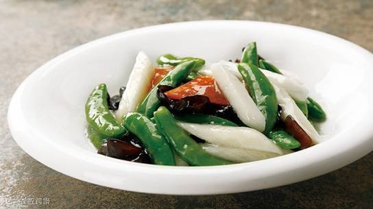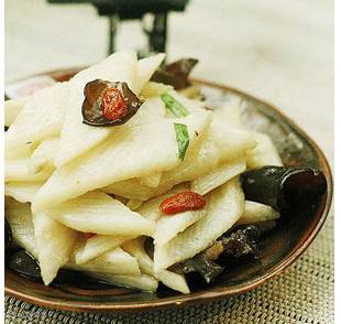 食材:甜豆250克、野生黑木耳5-6朵、山药200克、花椒20粒左右、盐1/4茶匙、香菇精1/4茶匙、橄榄油或色拉油2大匙。